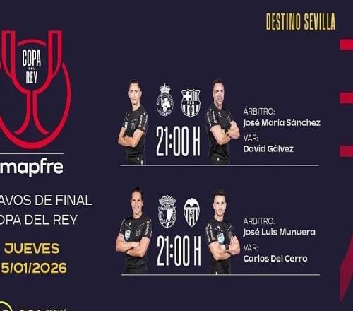 西班牙足协官方公布了国王杯1/8决赛最后一个比赛日的裁判安排,何塞-桑切斯将执法巴萨客战桑坦德竞技。当地时...