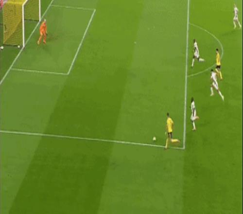 随后主队继续狂攻,直到第30分钟,安杰洛分球到左路,C罗强突下底传中,皮球击中防守球员弹到中路,安杰洛顺势抽射挂死角,1-1,双方回到同一起跑线。